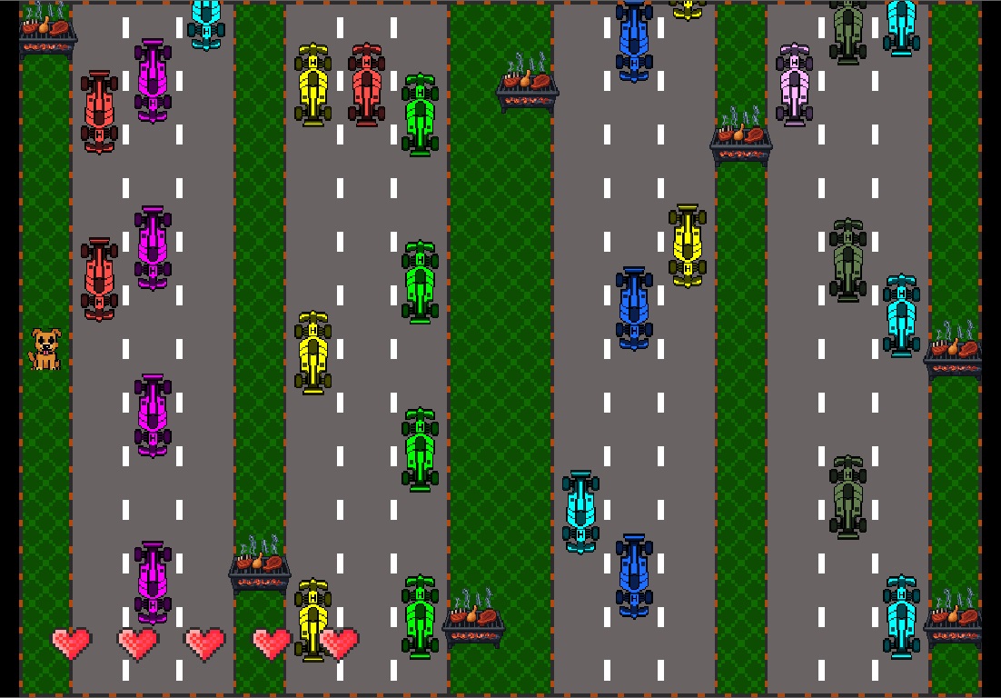 ¿Podrás ayudar a este perrito hambriento a cruzar la calle, esquivar autos y robar los asados?